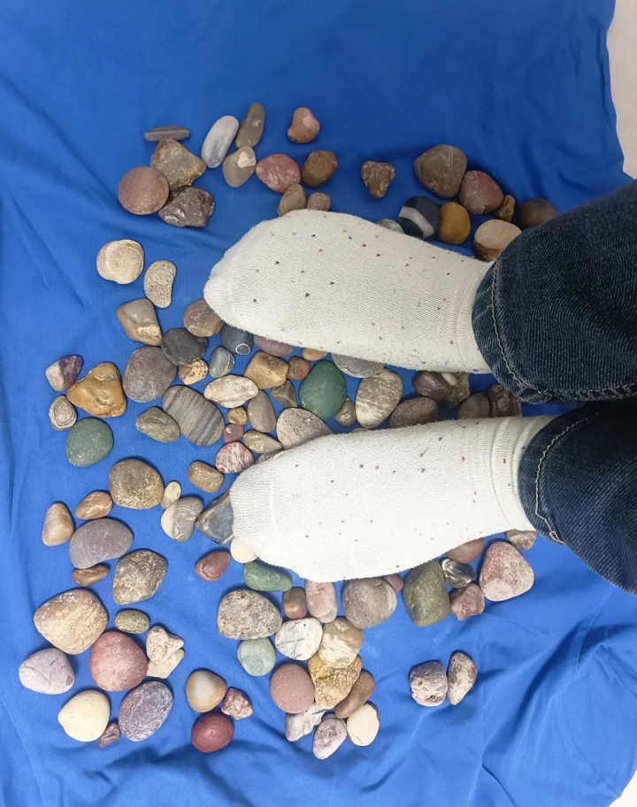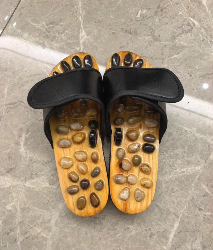 很多老人深信:穿鹅卵石拖鞋按摩足底=通经络=治百病。