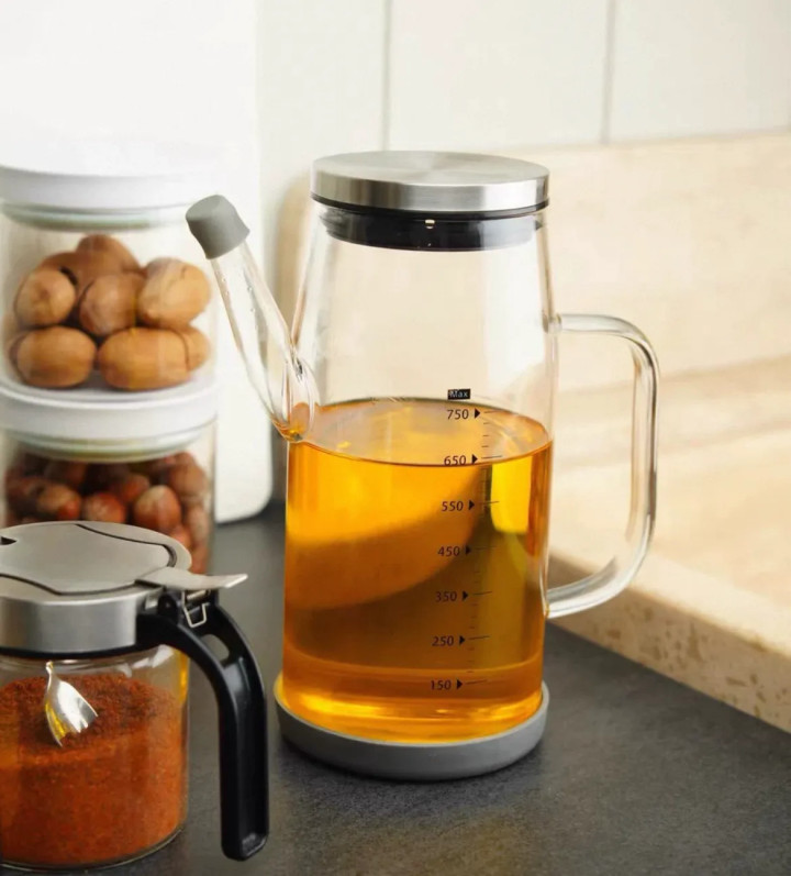 前阵子买的原生态油壶,乍一看真的符合我所有期待,广口、玻璃材质、能装又好倒、不挂油……