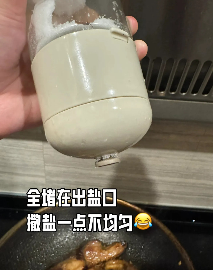 用着用着,盐全堵在出盐口,出来时忽多忽少、完全随缘。说好的精准控量呢?还不如用手抓,至少咸淡主动权在自己手里。
