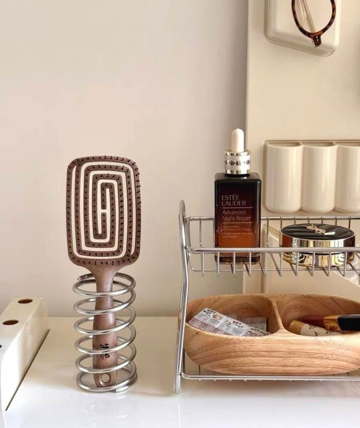 梳子无处安放,弹簧梳子架确实拿捏了这个痛点,往台面一立,梳子卡住不倒,整齐又高级。