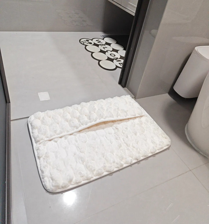 更离谱的是,居然还能化了!一旦受潮吸水过量,整块垫子就会变得软烂黏糊,粘在瓷砖上,那场面,简直像是史莱姆入侵。